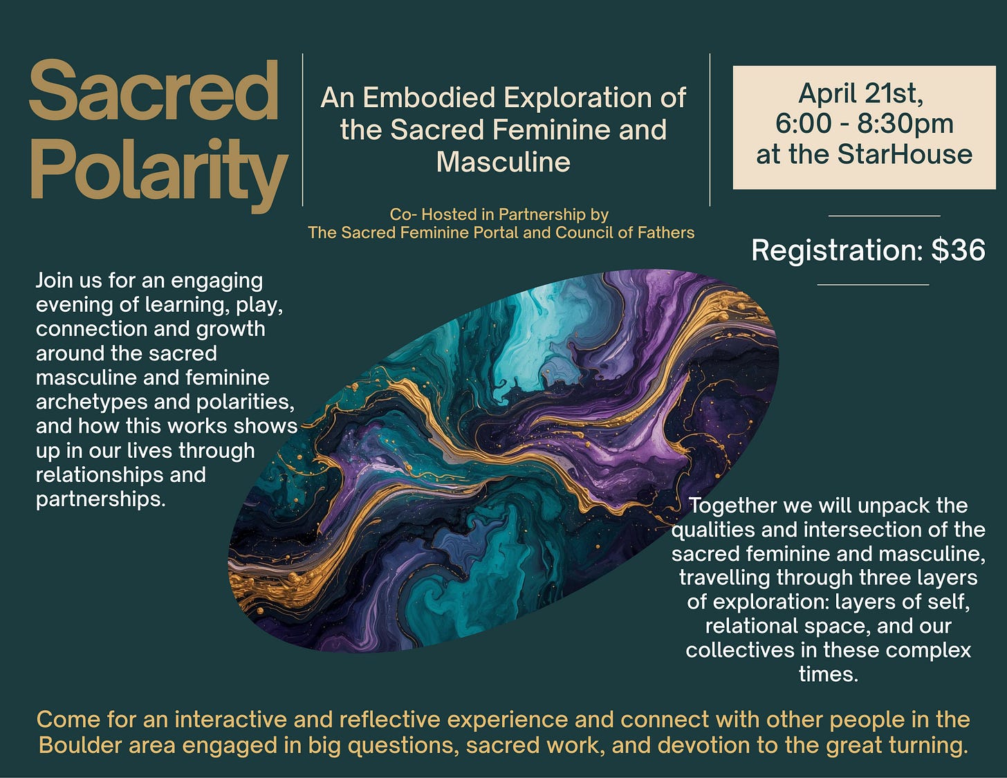 If you’d like to Walk together, there’s an opportunity for an embodied exploration of the Sacred Feminine and Sacred Masculine with Daniela Papi Thornton and Us coming up on April 21st at the Star House.